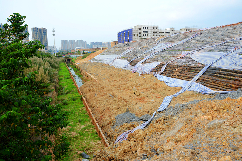 该项目目前已经完成土方开挖运输7.5万立方,土方回填压实7万立方,填土土工格栅铺设12.6万平方米,压脚墙长度220米,截至今年4月份共完成总投资275万元,预计2016年5月工程竣工验收。