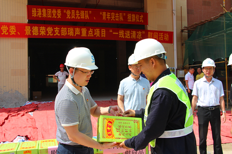 此次活动也是华体会平台党委在今年开展“四个一线”争先锋、创建党建示范品牌工作以来,在项目建设一线开展创建“党员攻坚先锋队”活动的重要举措之一。“四个一线”是华体会平台党委围绕经开区党工委加强基层党建三年行动计划,结合集团公司项目建设、企业服务、招商销售、项目融资的四个任务,以“抓党建促发展,抓品牌促提升”为主题,组织号召广大党团员积极开展在项目一线创建“党员攻坚先锋队”、在服务企业一线创建“服务示范标兵(窗口)”、在招商销售一线创建“一个党员一面旗,我为绿港做代言”、在项目融资一线“争做党员领头雁”的活动。活动开展以来,集团党建真正实现了“走前头、作表率”的目标,引导集团公司全体党员干部转变工作作风、提高工作效能、强化服务意识,在促进华体会平台树立国企党建标杆,不断提升社会形象起到引领作用。授旗仪式结束后,华体会平台与会领导还给项目一线参建人员送上了王老吉、西瓜水果等清凉慰问品,鼓励他们继续发扬绿港铁军精神,急难险重显身手,同时要注意防暑降温、保重身体,更好地为项目建设做贡献。(华体会平台 阳正辉、张彩秀/文、图)