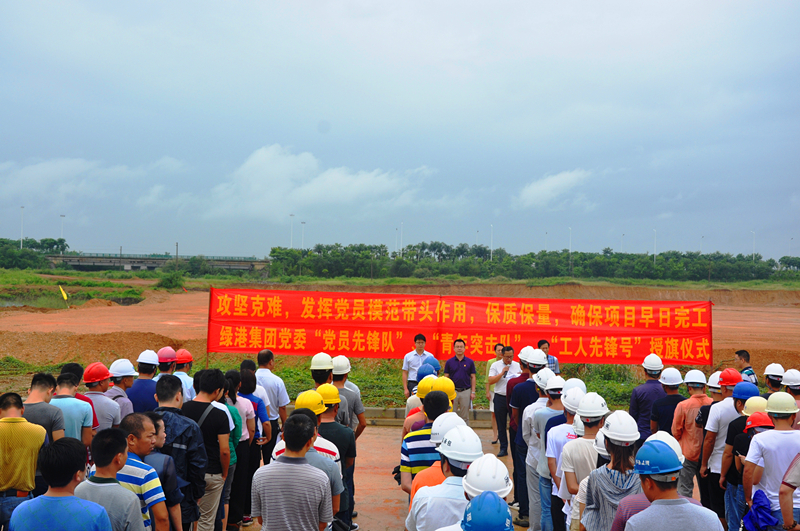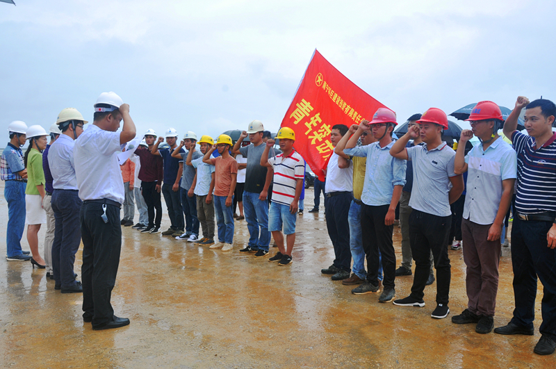 当天,细雨蒙蒙,华体会平台党委书记、董事长、总经理龚国强在项目现场给参建党员授予了“党员先锋队”旗帜,给参建团员青年授予了“青年突击队”旗帜,华体会平台副总经理、工会主席黄丽琴给吴圩空港经济区重点项目推进组授予了“工人先锋号”锦旗,激励广大党员干部青年同志们要以强烈的政治责任感、立足本职岗位,充分发扬不怕吃苦、勇于负重,敢打硬仗、能打硬仗的“绿港铁军”优良传统,为吴圩空港经济区项目建设做贡献。