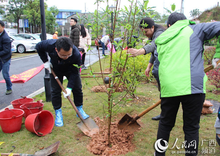 人民网南宁3月11日电 阳春三月,万物复苏,生机勃发。3月9日,细雨纷飞,春寒料峭,但是南宁经开区的绿港·国际中心却人潮涌动,爱意浓浓。原来,南宁华体会平台正在举行“情暖童心·携手植绿”学雷锋志愿服务月活动,200多名职工和家属一起参加了当天的爱心义卖、爱心捐赠和义务植树活动。