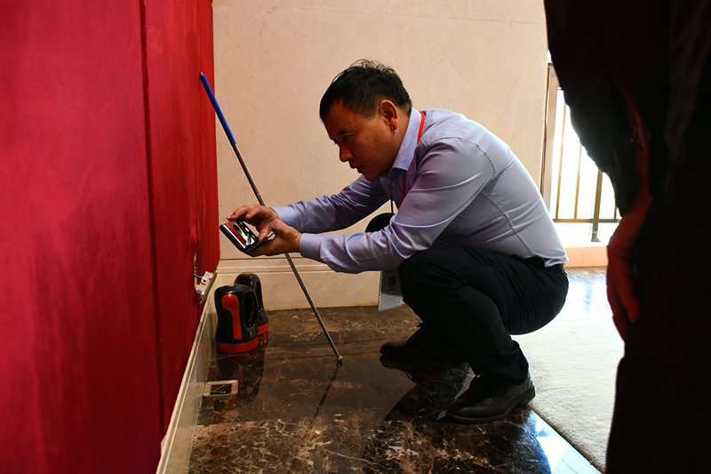 在认真听取荣鑫公司的介绍后,复审专家组与使用单位研祥公司及建设单位华体会平台相关代表进行了单独会谈,主要了解施工建设和交付使用中的情况。随后,复审专家对装修现场进行了实地核查,尤其对电源插座内外设置、伸缩缝处理、地面墙面空鼓情况、消防设备标识及开合程度、卫生间洗手台的安装等装修细节展开了细致检查,并认为各装修分项都能严格按照规范要求进行施工,装修质量精良。最后,复审专家还对工程资料进行了检查,一致认为项目工程资料完善,内容分部分项,规范全面。专家组在复审总结中高度赞扬了研祥项目的装修效果,并充分肯定了荣鑫公司在装修中对细节质量控制的精细化程度。