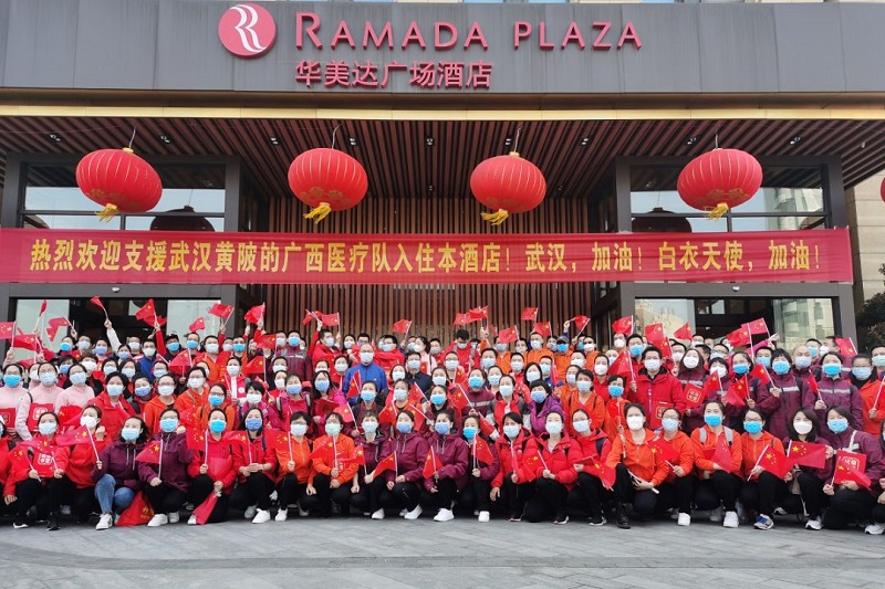 今天11时30分,广西支援湖北第一批医疗队153人出发去武汉天河机场,乘坐14时的飞机返程。
