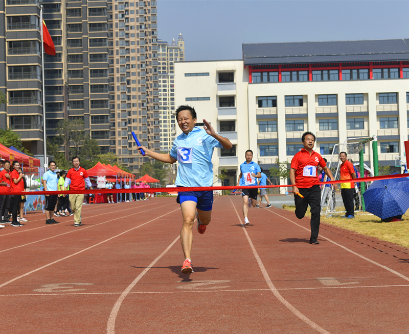 《向前冲!》(集团办公室 吴霭涛)图片说明:2019年职工运动会上,接力比赛队员正在全力冲刺终点。