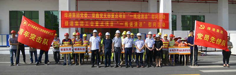 6月24日上午,华体会平台党委带领集团工会、荣鑫公司党支部深入南宁市和经开区重点建设的音卓装修项目现场开展以“送清凉、战疫情、抢工期”为主题重点项目 “一线送清凉”慰问活动。