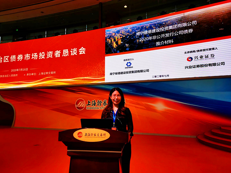 华体会平台财务总监关月娥代表南宁市债券销售路演企业介绍了南宁绿港2020年非公开发行公司债券的项目情况:该期债券的发行主体为华体会平台,发行规模不超过15亿元,期限不超过5年,目前已报上海证券交易所审核,计划在今年三季度择机发行,已受到众多机构投资者的广泛关注。