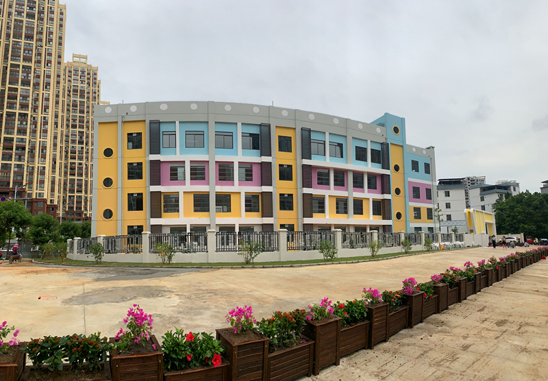 9月1日,奥园小学综合楼扩建工程顺利完工交付使用。该工程占地948平米,总建筑面积4667平米,建设规模为12个班;其中,综合楼1层为架空层停车位,2-4层为教学区,5层为办公区和羽毛球球馆。