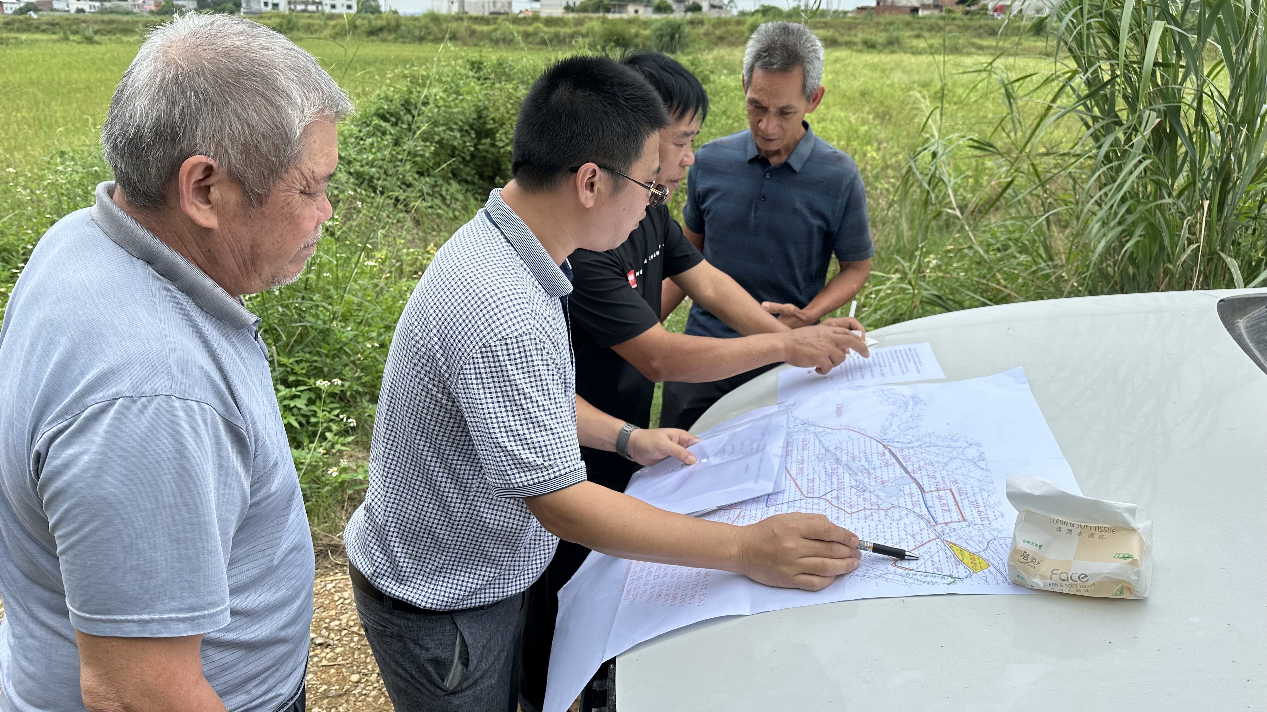 吴圩镇平垌村旱改水项目分田到户工作第一阶段也是最关键的阶段,是将经过旱改水改造后的土地合理地分配至各生产队,地块的远近、土质的肥瘦、水源的丰缺等条件都需要在分配时充分进行考虑,如何科学、合理、精准地实现土地分配,最大限度照顾各方利益,需要大量的实地沟通与协调。科巨公司结合以往旱改水田地分配经验,紧锣密鼓地开展分地工作。