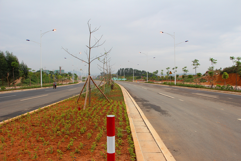 此次顺利竣工的光明路一期改扩建工程,是继友谊路延长线建成后的又一条城市主干路,向北可连接机场高速路,向南与明工业园相连,南北贯穿吴圩中心区。该路段全长3255.168m,道路红线宽度50m(42m),设计为城市I级主干路,双向六车道,路面结构为沥青混凝土路面。该项目的建成对完善吴圩空港经济区的交通路网,改善周边居民出行环境及带动沿线片区的经济开发都具有十分重要作用。