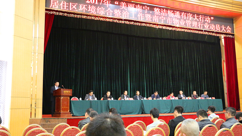 近日南宁市住房保障和房产管理局在明园饭店大礼堂召开了2017年“美丽南宁·整洁畅通有序大行动”居住区环境综合整治工作暨南宁市物业管理行业动员大会,会上对南宁市2016年度物业管理工作进行了总结并对2017年度物业管理工作进行了部署;同时也对“2016年度南宁市物业管理行业先进单位”进行了表彰及颁奖仪式。万方公司胡志勇总经理作为先进单位代表进行经验交流发言。