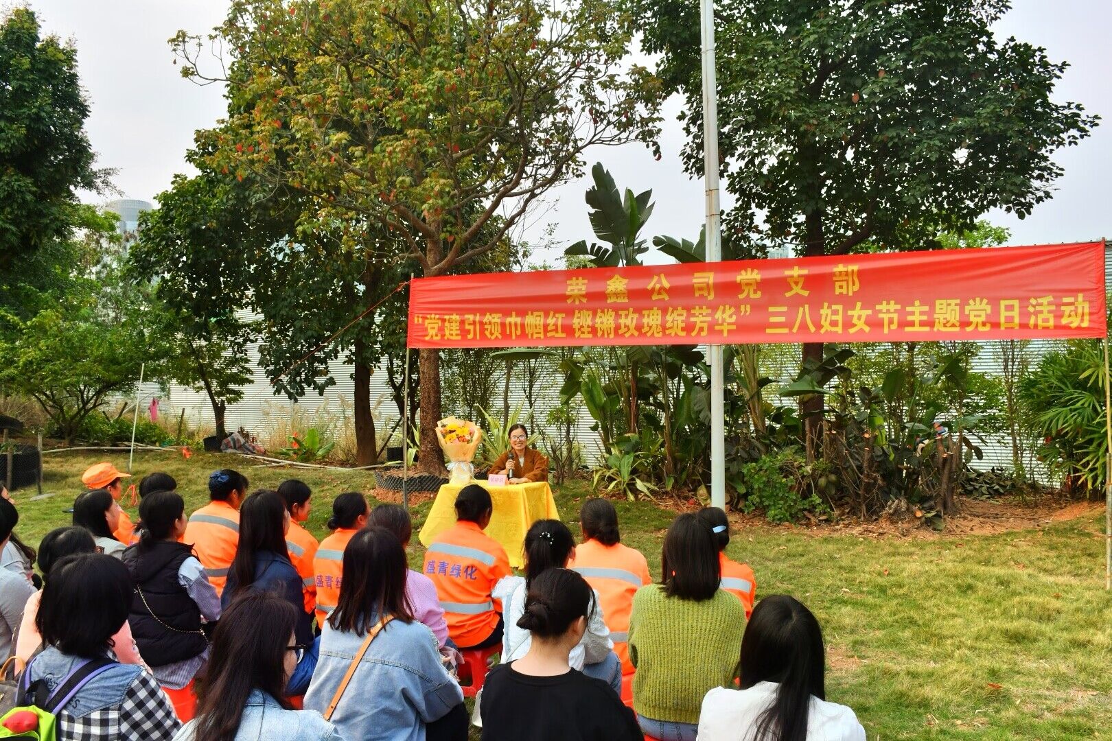 为深入学习贯彻党的二十大精神,凝聚巾帼力量,展现新时代巾帼风采。荣鑫公司党支部坚持党建统领,积极探索“党建+”工作模式,将党建与妇女工作有效融合,推动公司事业向纵深发展。3月6日,荣鑫公司党支部组织全体党员干部、女职工开展“党建引领巾帼红 铿锵玫瑰绽芳华”三八妇女节主题党日活动,集团党委委员、副总经理陆羿冰,荣鑫公司党支部全体党员、女职工约50余人参加。